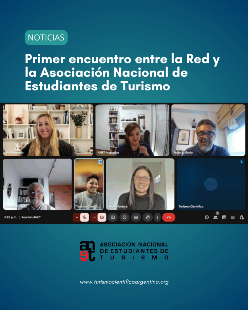 En línea con su compromiso de consolidar alianzas estratégicas en todo el país, la Red de Turismo Científico Argentina mantuvo una reunión institucional con la Asociación Nacional de Estudiantes de Turismo (ANET). Se trató de un primer encuentro de presentación y acercamiento, con el propósito de tender puentes entre ambas organizaciones y proyectar acciones conjuntas en el corto y mediano plazo.